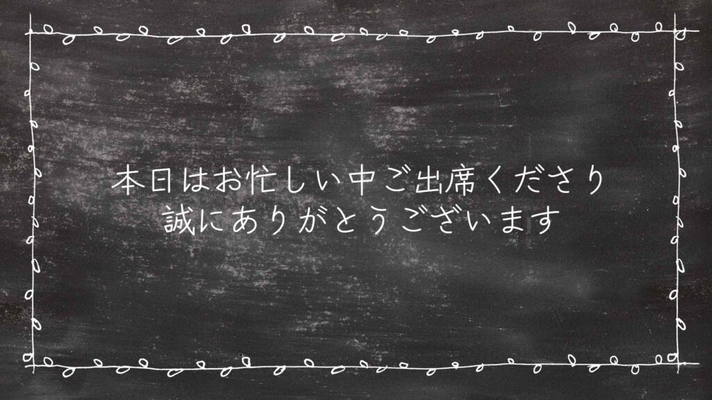 - 人気の黒板モチーフ: 誰からも愛される親しみやすいデザインで、会場を選ばず上映できます。